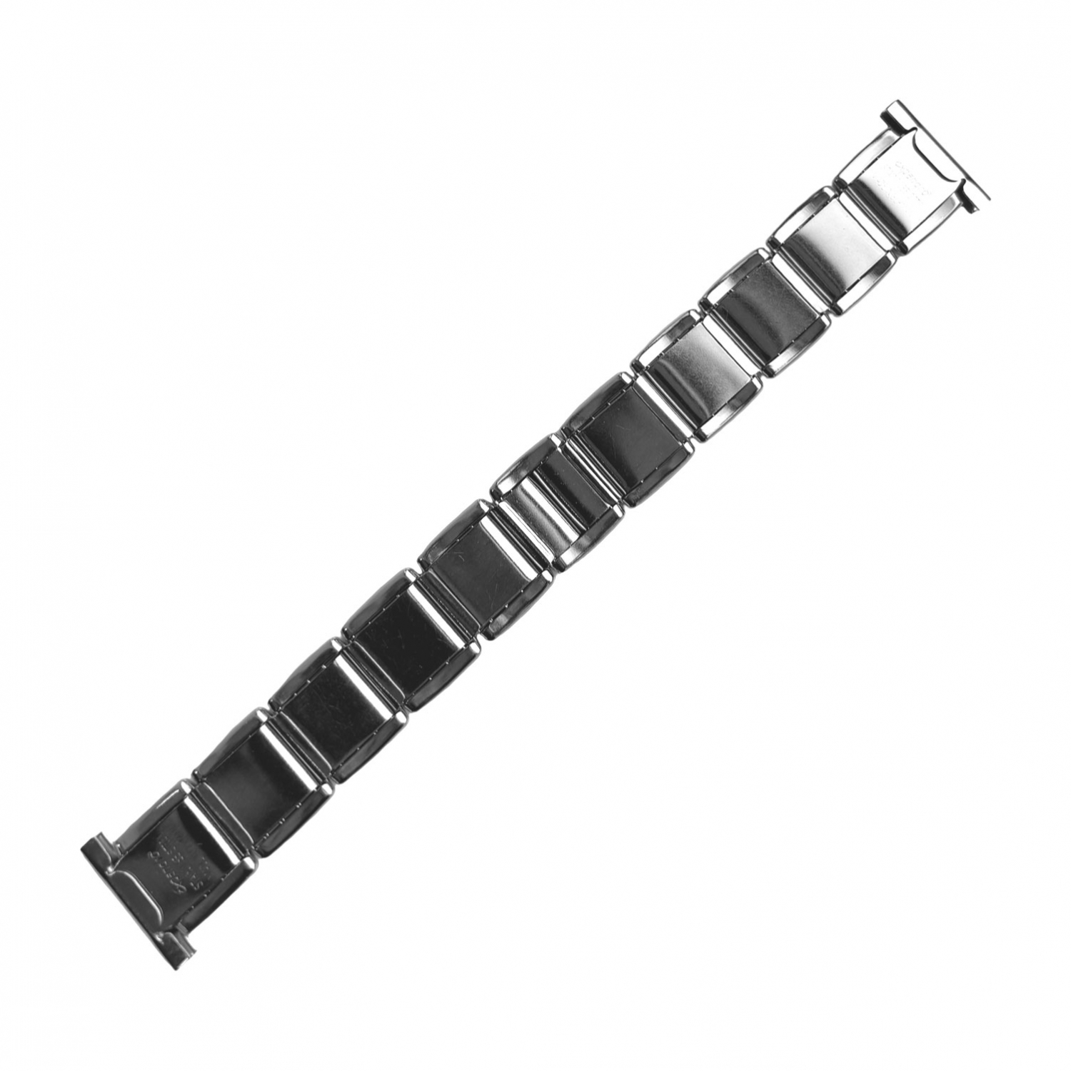 This watch bracelet is a flexible bracelet - the links (which can be removed individually to shorten the bracelet) can expand when taking the watch on and off. The watch bracelet is 16mm wide in the middle and 18 mm or 20 mm at the end. As customary in the 70's, the lug end can be made smaller with a file, so it also fits to watches with down till 16mm lugs.