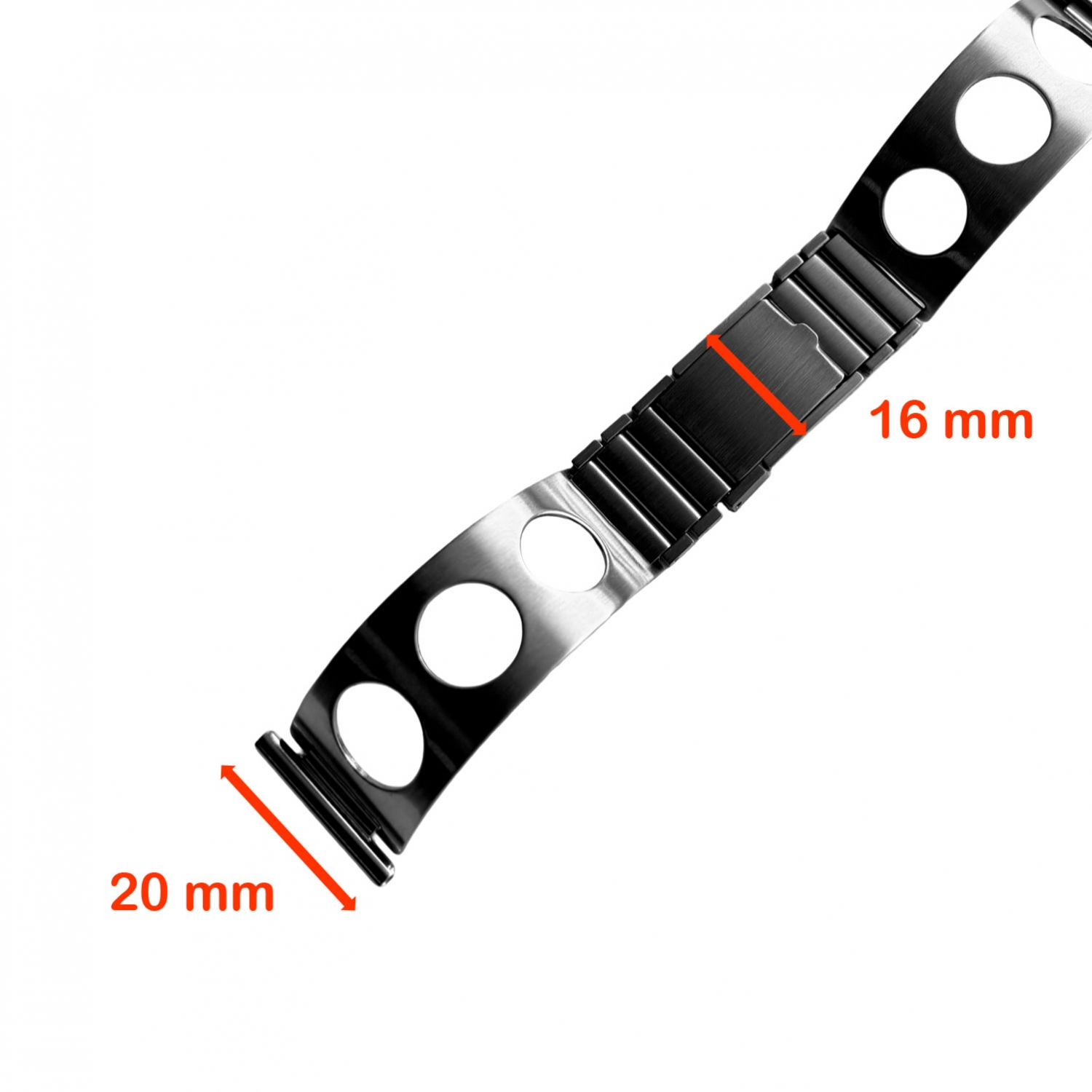 This watch bracelet is elastic at the clasp. To shorten the bracelet, the links to the right and the left of the clasp can be removed individually, if necessary.