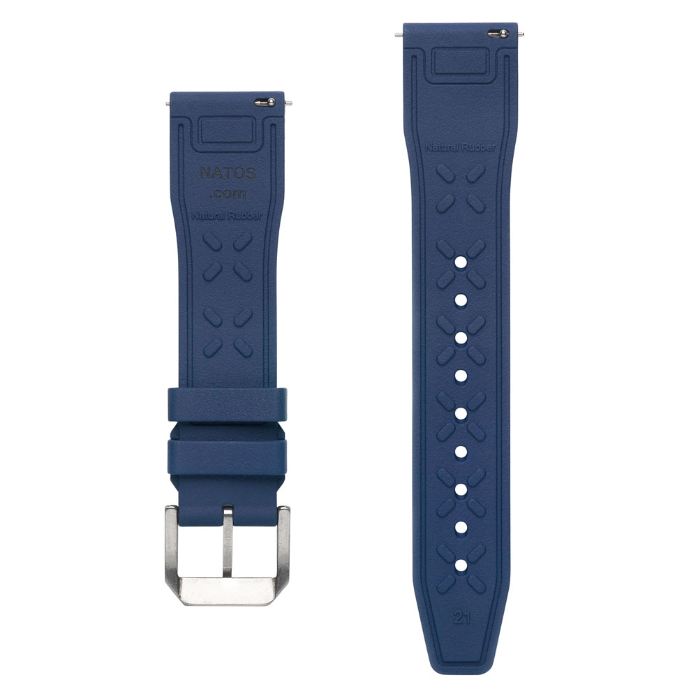 FKM rubber is a type of rubber originating from the heavy industry. FKM rubber (FKM means it contains fluorine-carbon bonds) has become a popular material for watch straps, because of the great sustainablity and its resistance to solvents, oils and extreme high and low temperatures. Compared to other rubber sorts, FKM-rubber watch straps are more durable and hypoallergenic, which reduces skin reactions.