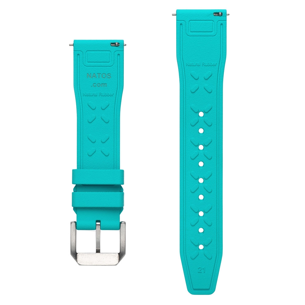 FKM rubber is a type of rubber originating from the heavy industry. FKM rubber (FKM means it contains fluorine-carbon bonds) has become a popular material for watch straps, because of the great sustainablity and its resistance to solvents, oils and extreme high and low temperatures. Compared to other rubber sorts, FKM-rubber watch straps are more durable and hypoallergenic, which reduces skin reactions.
