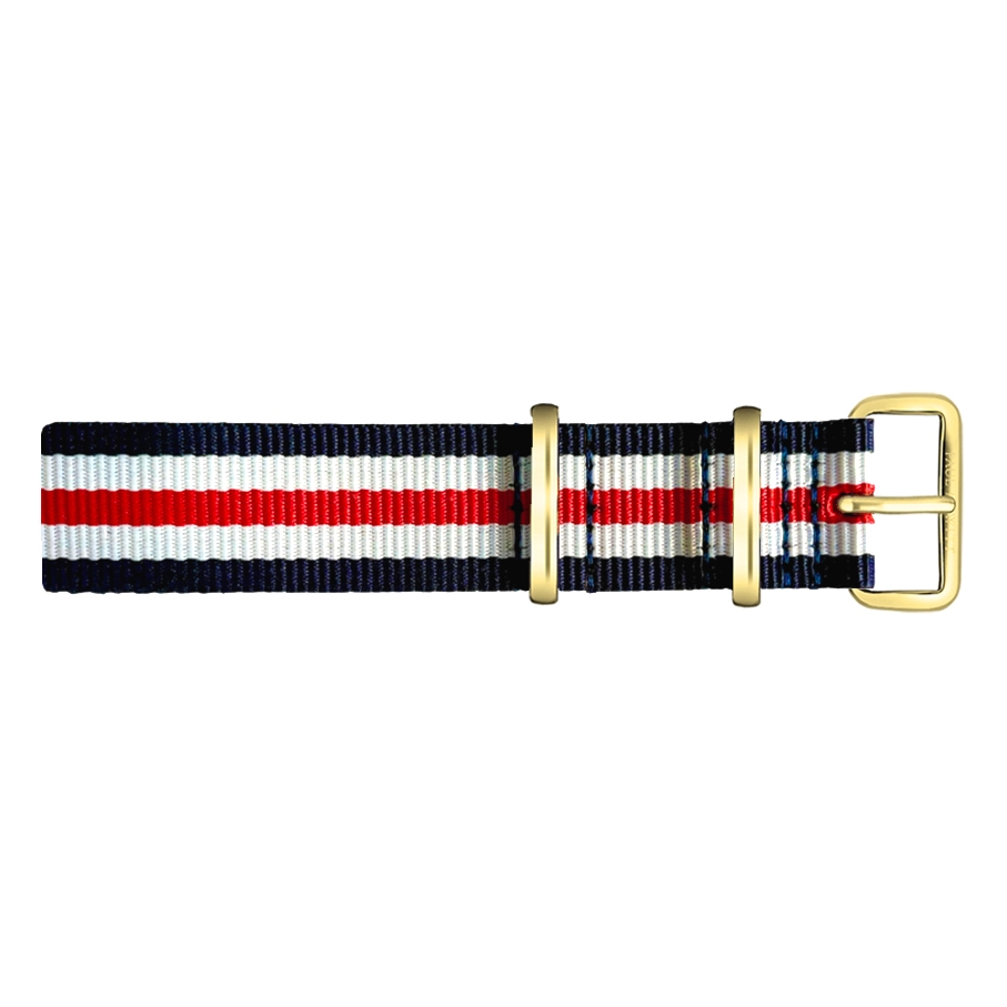 Paul Hewitt NATO Watch Strap Navyblue White Red with Gold Buckle 20mm