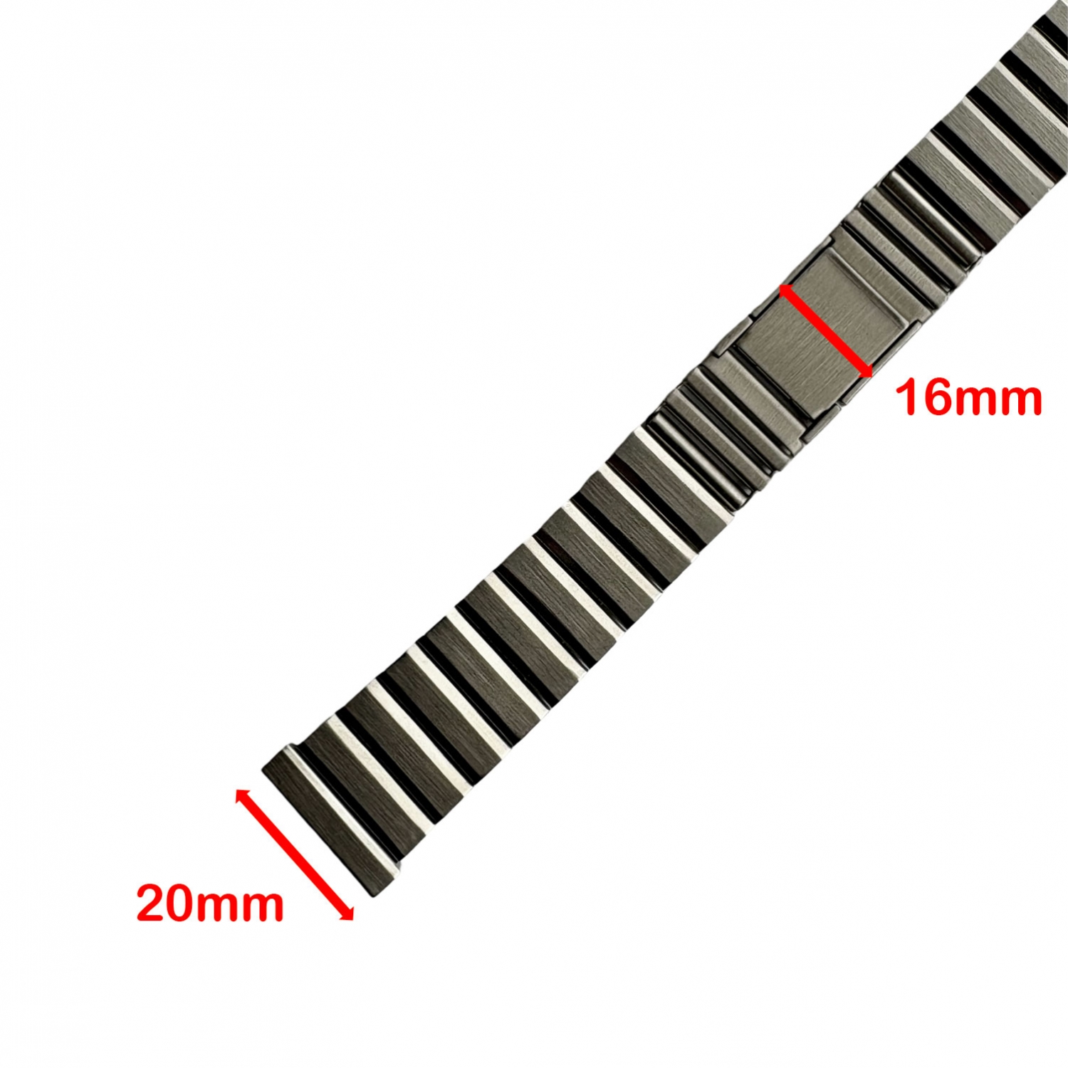 The watch bracelet is 20mm wide at the lug and 16mm at the clasp. As customary in the 70's, the lug end can be made smaller with a file, so it also fits to watches with 18 and 19mm lugs. We advise you not to buy the bracelet if your wrist size is larger than 19cm.